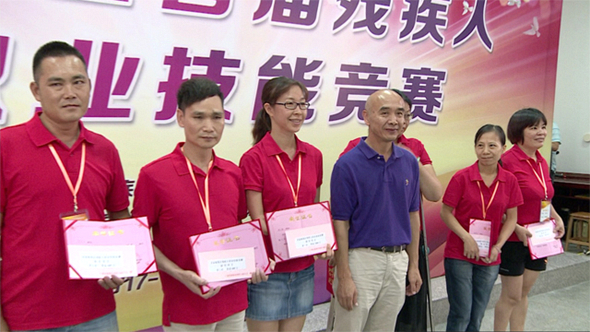 区人大常委会党组书记、常务副主任严宗活,区委副书记、政法委书记简锡波,市残联理事长陈学军,市、区相关部门、单位负责人,各镇街有关负责人,参赛选手、裁判等参加了颁奖仪式。来自市桥街的张小敏(番禺电大学生)获得了广绣和插花两个项目的第一名,来自市桥街的郝赫、石楼镇的陈紫珊、大龙街的黄文珊分别获得了盲人保健按摩、计算机办公应用和西式面点等项目的第一名。严宗活、简锡波等领导为获奖选手颁奖。