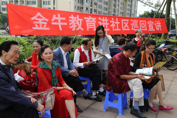 在公园社区的小广场,热心居民给我们带来了热情洋溢的舞蹈与合唱,喜迎中秋、国庆,吸引了大批居民群众。利用高涨的人气,我院教职工积极宣讲并分发宣传册,认真为现场居民解读金牛区教育局关于幼儿入学和农民工随迁子女接受义务教育的相关政策与办理流程。随后,全体员工分成几个小组,分别来到幼儿园、院落、小区、菜市场、超市等地方,积极进行宣讲与宣传册的发放,把以上教育资讯到尽可能多的带给更多的社区居民。同时,我院积极利用“社教课堂”这一教学阵地,对学员也进行了“幼儿园入园20问”和“农民工子女接受义务教育”及“金牛教育”的宣传,让他们把这些便民新政带回千家万户,更好的了解政府的服务功能,知晓各项便民利民措施,为全区居民的和谐生活提供优质高效的服务。