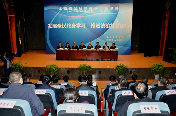 启动仪式上,市终身教育与学习型城市建设促进委员会办公室副主任、市教育局局长马兆兴向大会作了太原市终身教育与学习型城市建设工作报告。报告回顾了全 市10年来举办学习周的历程,总结了《太原市终身教育促进条例》颁布实施三年来全市学习型城市建设的进展,并介绍了十三五期间的工作思路。中国成人教育协 会常务副会长张昭文向大会致辞,对太原市的工作给予了充分肯定与鼓励,并传达了国际学习型城市大会以及全国学习型城市建设的最新精神;魏民副市长做了重要 讲话,对全市工作给予了肯定并提出了要求;最后市人大副主任傅建荣宣布太原市2015年全民终身学习活动周启动。大会结束后,大家观摩市文化局举办的非物 质文化遗产展示表演与太原美术馆举办的美术作品展,还同市民参与了山西现代双语学校举办的同外籍教师一起谈读书沙龙等丰富多彩的活动。