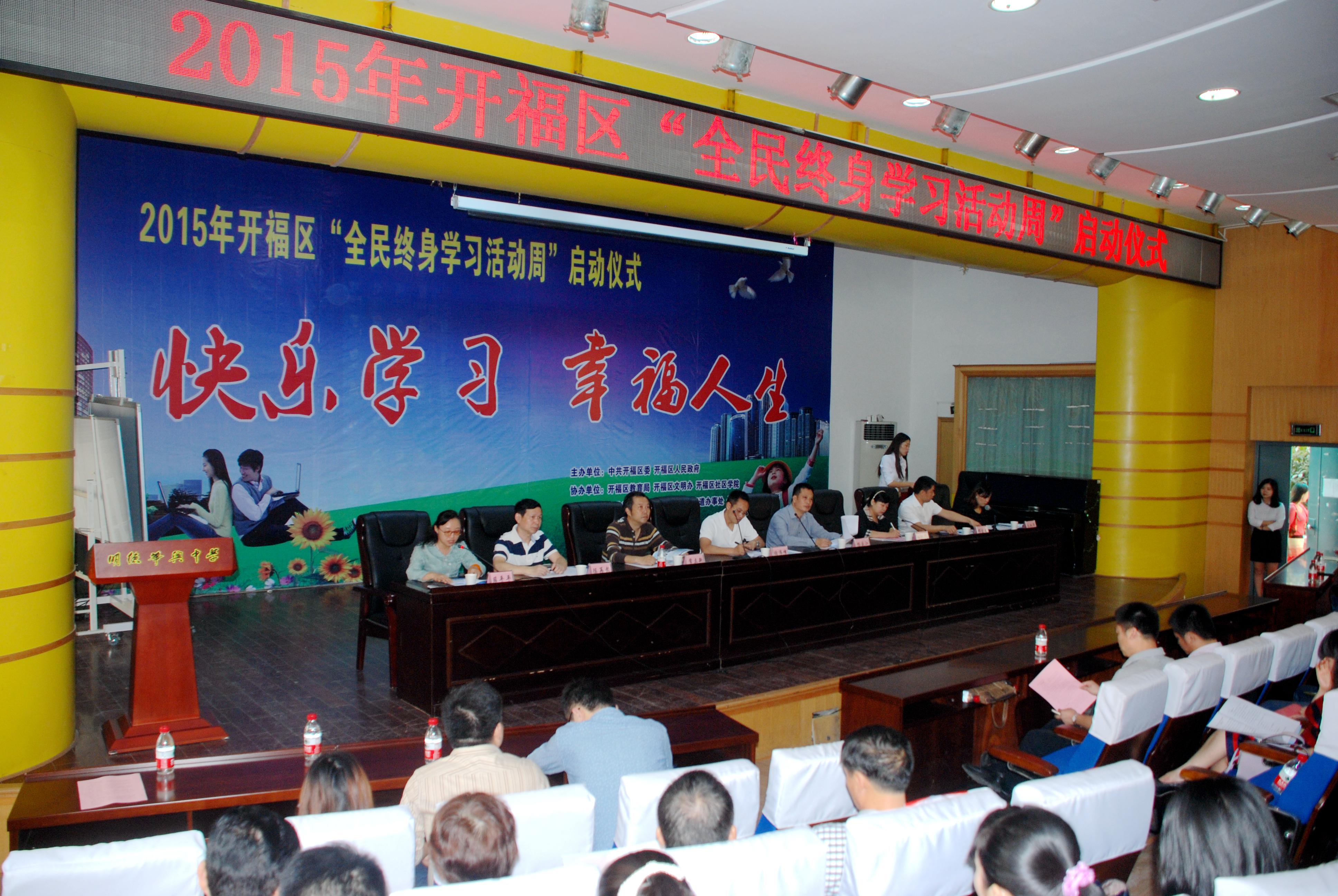 今年的开福区“全民终身学习活动周”启动仪式由中共开福区委、区人民政府主办,区教育局、区文明办、区社区学院协办,中共开福区通泰街街道工委、通泰街街道办事处和明德华兴中学承办。