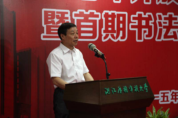 省民政厅、省文化厅、省文联、省政府参事室、省中医药管理局,江苏开放大学、上海开放大学、浙江中医药大学、浙江财经大学有关领导出席活动。参加仪式的还有学校领导、省有关厅局、兄弟院校相关处室负责人、我省电大系统代表、老年开放教育试点单位负责人、首期书法班学员和教职工代表。副校长、省社区教育指导中心副主任眭宝良主持揭牌仪式。