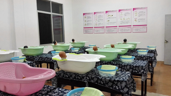 为了加强对家政服务人员的培训,提高家政服务员的实际操作能力和工作水平,我们利用丽水电大老办公楼改建了这个家政服务培训实训基地,该基地占地面积300多平米,共三层,每层约为100多平米。一楼为办公场所、移动厨艺实训室,二楼改建成为养老护理员实训室和现代家居保洁实训室,三楼建成为母婴护理师(即月嫂)实训室。