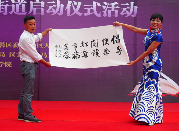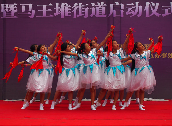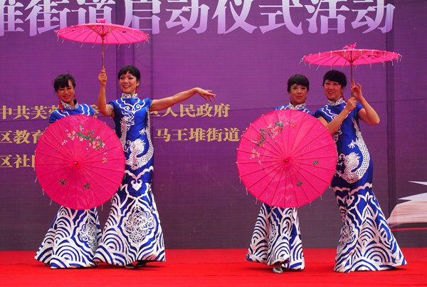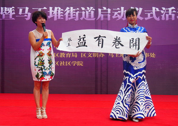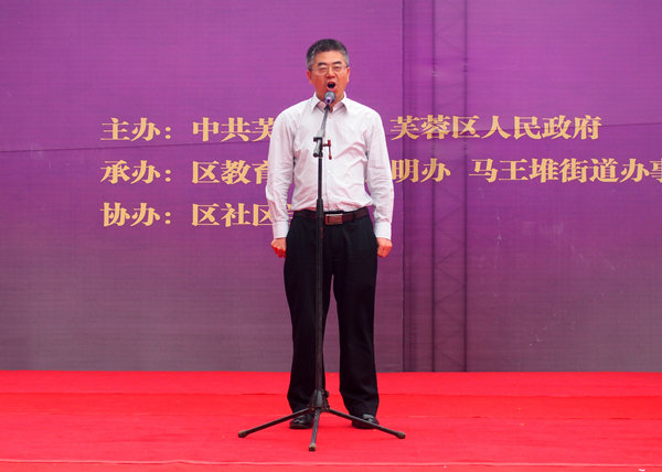 华美纷呈的开场舞蹈拉开启动仪式的序幕,芙蓉区教育局局长谢小红随即登台介绍活动的相关情况。据悉,本次读书周活动以“倡导快乐阅读,打造幸福芙蓉”为主题,辖区各街道,企、事业单位和社会团体等将共同组织开展棋艺、歌咏、舞蹈、书画等特色主题活动,打造让社区居民实现终身学习的“永动机”。