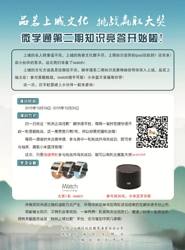 上城区在年初全新打造了基于微信的移动学习平台“微学通”,使其成为市民“口袋里的学习圈”。“微学通”平台的创建渗透了“游戏化”、“碎片化”、“移动化”及“社区化”的四化教育理念,集学习、管理、互动、报名于一体,市民只要关注“微学通”平台,就能了解各类培训、讲座及活动,走到哪里都可以报名参加。如近期开展的“品茗上城文化 挑战赢取大奖”上城民俗知识竞答活动,就吸引了一大批市民粉丝的加入。趣味性、游戏化及闯关式的过程学习,激发了市民学习的内驱力,调动了市民学习的积极性,让市民“零碎”的学习时间变得更为高效便捷。