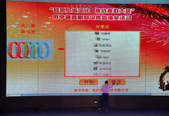 开幕式上,“品茗上城文化 挑战赢取大奖”首期知识竞答的现场抽奖,是市民们关注的重点环节。当抽奖嘉宾按下“开始”按钮,抽奖信息随之在大屏幕上滚动起来,现场雅雀无声,随着“停止”按钮的敲下,参与奖和大奖随即产生,场上观众爆发出热烈的掌声!幸运之神最终降落到微信昵称为水上彩虹的20位市民和微信昵称是“胡巴胡巴”的市民身上,他们分别获得了小米手环和Ipad mini!此时,主持人高声宣布,第二期“品茗上城文化 挑战赢取大奖”民俗知识竞答在终身学习活动周中举行,欢迎市民踊跃参赛!在场观众纷纷拿出手机,扫微信,加关注,积极参与到终身学习的行列中来。
