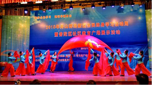 2015年舟山市全民终身学习活动周由市老干部局、市文明办、市教育局、市文化广电新闻出版局、市科协、市社科联联合主办,活动周主题是“倡导全民学习,建设幸福舟山”,本次开幕式由普陀区教育局和舟山电大(舟山社区大学)联合承办。开幕式上,表彰了2015年市民素质提升工程优秀志愿者、先进个人、先进集体,2015年舟山市优秀社区教育干事,舟山终身学习网“百姓学习之星”和2015年舟山市社区教育优秀项目,并宣读了舟山市社区“终身学习体验吧”建设通知并授牌。