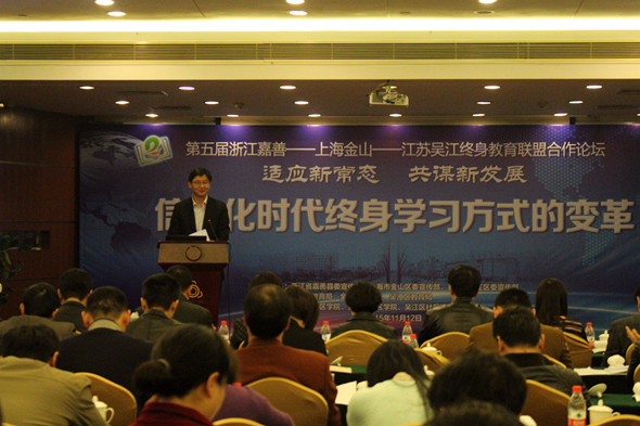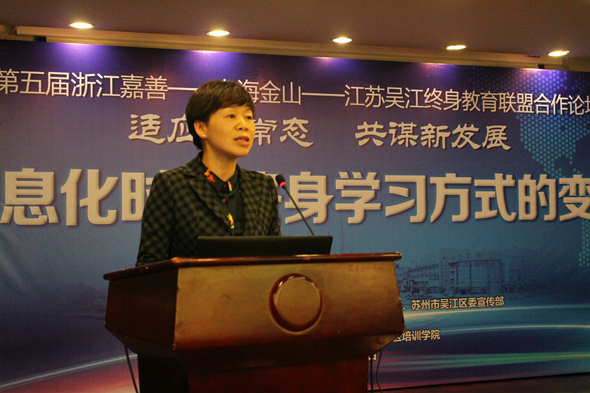本次三地论坛的主题是“适应新常态、共谋新发展”,旨在探讨“信息化时代终身学习方式的变革”。面对当前“新农村建设”、“城市化进程”、“学习型社会建设”的新形势,探讨如何有效开展城乡社区教育,探索信息时代学习方式的新型模式,提高三地社区教育的质量和效益,共谋三地社区教育的繁荣发展。论坛上,来自三地的6名代表进行了主题发言,嘉善县妇联办公室主任孙羡、嘉善社区学院办公室主任戈玮巍分别代表我县作了《创新机制,打造品牌,深入探索家庭教育指导服务新模式》、《新媒体时代成人学习方式的变革》主题发言。