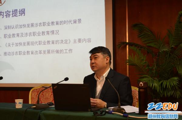市教育局职业与成人教育处副处长钟海云在开幕式上进行了讲话。钟处长在讲话中分析了目前我市农村成人社区教育的现状,强调在新农村建设和新型城镇化建设背景下,我市农村成人教育工作要以服务辖区经济和社会发展、满足全体社会成员学习需求为宗旨,以提高农民的思想文化素质、职业技能、创业能力、文化生活质量为目的,以现有的各级各类学校为支撑,以规范性乡(镇)成人学校和示范性办事处社区学校建设为突破口,整合各种教育资源,促进各类教育的协调发展,逐步建立起适应新农村建设以及居民学习需求的成人教育管理体制、运行机制和教育培训模式,多渠道、多层次、多形式开展各类教育培训活动,提供开放的、多样的、及时的教育机会,有效满足了城乡居民对教育的需求,为构建终身教育体系,推动郑州都市区建设发挥积极作用。今后,要进一步提高站位,努力做好四个方面的工作:一是围绕新型农村社区建设,提高服务意识;二是改革创新,提高服务水平;三是加强师资队伍建设,提高教育教学能力;四是大力开展农村社区教育,培育新型职业农民。