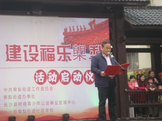收藏由中共榔梨街道党工委、榔梨街道办事处主办,长沙县榔梨街道社区学校承办的“弘扬传统文化 建设福乐榔梨”启动式于2015年11月22日在榔梨街道土岭文化广场如期举行。