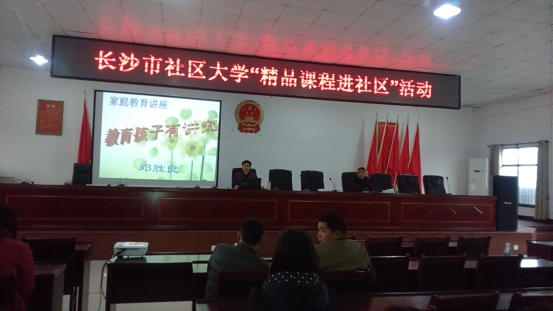 收藏2015年11月25日上午,长沙市社区大学“精品课程进社区”活动在宁乡县菁华铺乡社区学校多功能会议室成功举行。该社区居民和菁华铺中心小学、洪仑山小学的家长近200人参加了活动。
