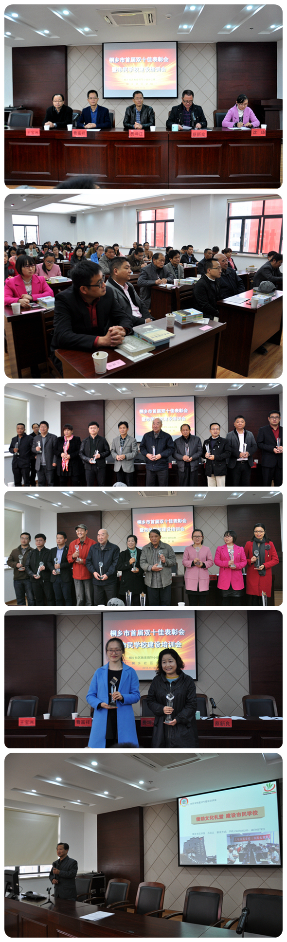 收藏11月19日上午,桐乡市首届双十佳表彰颁奖暨市民学校建设培训会在桐乡社区学院隆重举行。