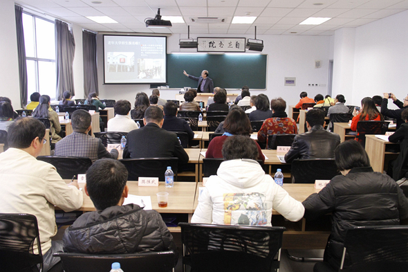 上海开放大学王伯军副校长以《接纳现实,欢度晚年——做一个智慧的老年人》为主题,从适应退休的智慧、对待家人的智慧、与人相处的智慧和身心和谐的智慧四个方面阐述了老年人如何培养健康的生死观,过好精彩又快乐的老年人生。宝山区教育局刘政副局长通过《老年学习团队的培育和建设》为题的讲座,以宝山区学习团队为例分享了宝山区是如何利用项目化推进、共享化专培、社会化互助、基地化发展四剂“维他命”来开展团队建设,推动老年教育的发展。上海市老年教育工作小组办公室李骏修主任以《上海老年教育课程和资源建设》为题,介绍了上海在老年教育上的课程设置,在资源开发方面尤其是网络资源上的实践与探索。小组办李学红副主任以《上海老年教育发展现状与趋势》为题,从上海市老年教育工作的概述、主要工作回顾、面临的挑战和未来发展目标与任务等几个方面介绍了上海市在老年教育工作上的一些经验与做法。