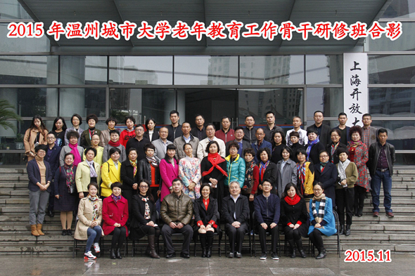 收藏为深入探索新的老年教育教学模式及工作机制,进一步促进老年教育事业健康发展,11月23日-27日,由上海开放大学、上海市学习型社会建设服务指导中心主办的“2015年温州城市大学老年教育骨干研修班”在上海顺利举行。