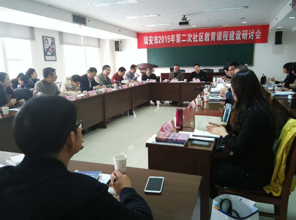 收藏为进一步提升社区教育课程建设水平,努力打造社区教育品牌,增强社区教育服务能力,推进社区教育改革与发展,12月4日,瑞安市召开2015年第二次社区教育课程建设研讨会。此次会议由瑞安城市学院、瑞安市社教办和瑞安市语文学会共同举办。中央广播电视大学出版社总编辑任岩,省职成教协会副秘书长、省教育科学研究院研究员、浙江大学硕导郭耀邦,浙江广播电视大学学习资源中心主任张吉先,浙江省社区教育指导中心办公室副主任杨淑珺,温州城市大学教育技术与资源建设处副处长孙文袭、教学督导中心顾问叶益定、科研处顾问陈启雷等专家应邀出席研讨会并作专题发言。瑞安城市学院院长兼市教育局副局长俞彪,瑞安城市学院副院长孙建新、卢建平等和2015年温州市社区教育特色课程立项和论文获奖教师及第二批讲师团成员共40余人参加研讨活动。