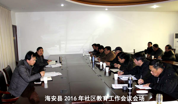 收藏2016年1月13日,在海安高新区社区教育中心召开了“海安县2016年社区教育工作会议”,会议由县教育局职社科张德明科长主持、林发俊副科长进行了文件解读和业务辅导,各区镇社区教育中心校长、教导主任及教育现代化创建工作材料员出席会议。