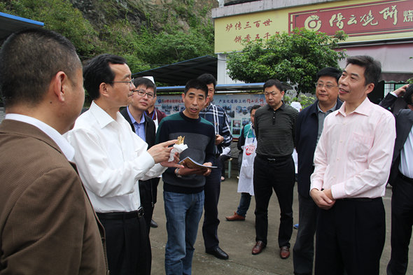 在许华书记的带领下,考察团实地参观了缙云社区学院烧饼师傅培训基地,听取了缙云烧饼品牌建设领导小组组长、人大副主任陈庆源详细介绍的缙云烧饼产业发展情况,对缙云烧饼品牌推广和培训工作非常赞赏,认真细致地向缙云烧饼办主任朱民、缙云社区学院培训处主任章耀芳咨询相关措施,纷纷和著名缙云烧饼师傅赵一均合影留念。