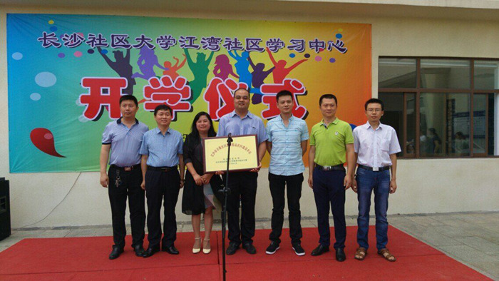 6月21日上午,长沙社区大学江湾社区学习中心开学仪式在社区前坪举行。长沙社区大学副校长林涛,长沙市教育局高教处处长丁郭,开福区社区学院办公室主任王景,副主任羊勇等领导出席仪式,并授予江湾社区“长沙市首批社区教育精品社区建设单位”。近400名学员和居民群众参加了开学仪式。