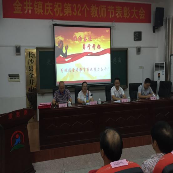 金秋九月,硕果累累,这是一个收获的季节,也是新一轮奋战的崭新开端! 在第三十二个教师节来临之际,金井镇党委、政府和镇中心学校为贯彻长沙县教育发展的精神,紧跟全县教育工作总体规划,弘扬全社会尊师重教的良好氛围,在金井中学举行了庆祝教师节的活动,这是金井、双江并镇以来的第一个教师节,会上表彰了一批优秀教师、优秀教育工作者和优秀班主任。