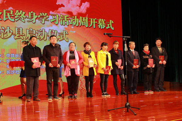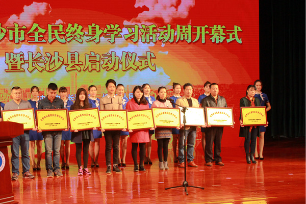 启动式上集中表彰了一批“终身学习活动品牌”、“百姓学习之星”,为全市首批示范性社区学习中心授牌。目前,长沙市社区学校已实现全市街镇100%覆盖,学习中心的建设已经向社区、村延伸,计划五年创建百所示范性社区学习中心,今年已成功创建首批23所。