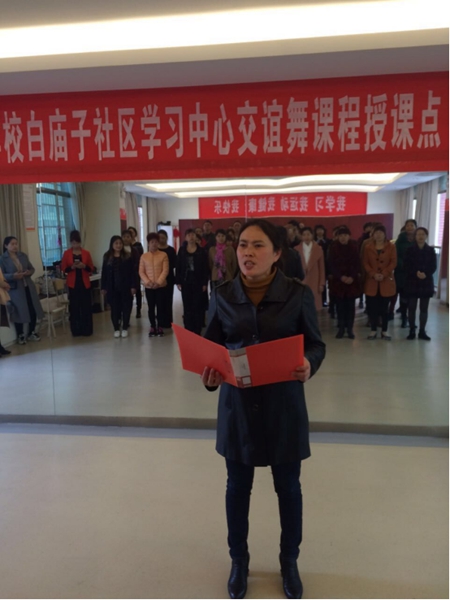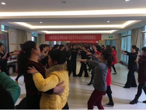 应舞蹈爱好者要求,经历前期报名,聘请教师,场地布置等筹备工作,3月8日上午9点,洋湖街道社区学校白庙子社区学习中心交谊舞班在三楼排练厅正式开课。