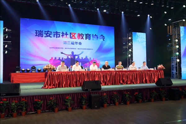 6月10日下午,瑞安市社区教育协会第二届年会暨托管服务成果展示汇演在瑞祥实验学校盛大举行。瑞安市教育局、瑞安城市学院以及全市各教育学区、社区学校、学校工作站领导、教师、家长、学生共1000多人参加会议,规模空前、气氛热烈。