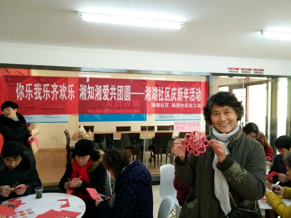 社区工作人员根据居民需求,开展社区主题活动,同时在一活动中引导中老年人一直保持中年时代的心态与生活方式,由自己创造幸福晚年生活。