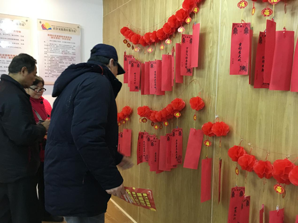 由主持人带领完热心活动及介绍完活动游戏规则后,活动参与者门像是玉米放进了油锅,瞬间变成爆米花的场面,在新年猜谜区、最强投手套环区、手剪红窗纸区,人扎堆的在各区内等候着体验和感受游戏魅力。在谜语墙前,你能听到张阿姨手托着下巴,踱步思考着,小声嘀咕着:“555,555,555。打一成语,这是什么哦?三个三五。哎嘿,知道了!三五成群!”回头看向套环区,你能看到长辈们各种投姿,以及连中时一脸喜悦的蹦跳到工作人员面前获得通关印章。走回大厅内,考验微技巧的剪窗花,会让你误以为来到了手工课程上,雪花、春字、小狗、灯笼,在通过思考和折叠、裁剪后,一个个作品相继而出。除游戏外,有部分阿姨叔叔们觉得玩得不过瘾,便开始在现场即兴展示舞蹈,沉静在庆新年的快乐中,久久不愿散场。