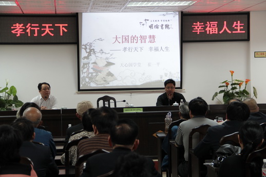 讲座开始前,岳麓区教育局书记、社区学院副院长喻建平就国学教育、社区教育的重大含义以及如何进一步弘扬国学文化、做好传统教育工作进行了阐述。