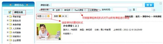 1. 课程类型:平台分为单视频、三分频、FLASH动画课程三种类型的课程。
