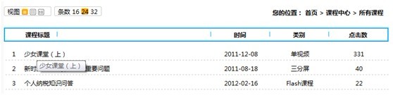 课程图示的展现方式,选择条数,可以控制当前页面显示的课程数量。
