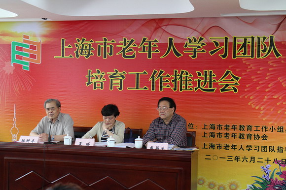 为进一步落实《上海市老年教育十二五发展规划》,推进本市老年人学习团队建设,2013年6月28日下午,“上海市老年人学习团队培育工作推进会”在普陀区业余大学召开。上海市教委终身教育处副处长夏瑛、上海市老年教育工作小组办公室副主任陆耕丰出席了会议并作了发言。市级老年大学领导、各区县老年教育工作小组办公室领导、联络员及优秀学习团队的代表等近100人参加了会议。