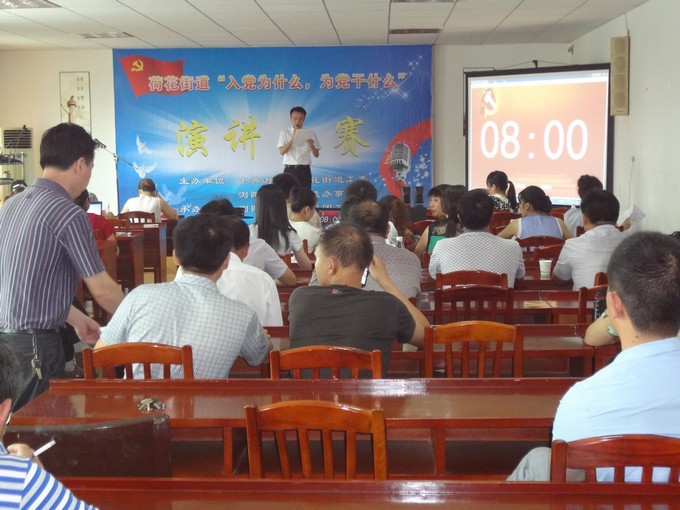 收藏为了隆重纪念中国共产党成立92周年,重温和歌颂党的光荣历史和丰功伟绩,继承和发扬党的光荣传统和优良作风,展现改革开放和社会主义现代化建设的伟大成就,进一步激发党员干部爱党爱国的热情和历史责任感,荷花街道工委、办事处、团工委、街道社区学校于8月2日上午8:30在荷花街道办事处三楼会议室联合举办了以“入党为什么,为党干什么”为主题的演讲比赛,以抒发我们对党的热爱之情,表达我们对党的感激之情。