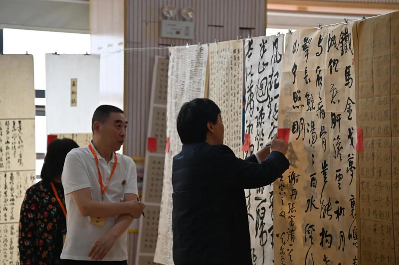 评审现场热闹非凡,书画作品铺满整个会场,一卷卷刚劲有力的书法作品,一幅幅赏心悦目的绘画作品,以书言志、以画寄情、挥毫泼墨、丹青生辉,表达出创作者积极向上的精神面貌,对传统书画文化的坚守和热爱,富有时代气息和正能量。