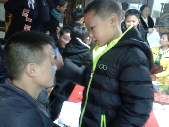 活动以闯关的形式展开,完成规定的任务即为闯关成功。第一关蜘蛛侠来袭,要求孩子为父母“画”妆成蜘蛛侠,父母为孩子穿上神圣的战袍,即可进入第二关——我是环保小卫士。美育堂教师陶红和美育志愿者带领市民朋友骑自行车到鹤山镇猪市河坝街参观“废旧物品回收站”,亲眼目睹身边惊人的浪费现象,让参与者意识到节约已经到了刻不容缓的地步。然后在废旧物品回收站购买3个废弃易拉罐,再骑车返回出发地进入第三关——我爱清洁。参与者到后花园清洗购买的废弃物并擦干,待进入下一关使用。第四关——我会变废为美。参与者进入创意空间,用自己手中的废旧拉罐创造独特的作品——超级机器人,制作过程中可以借助各种辅助材料和工具,材料用多少取多少,随时随地厉行节约。经过参与者的精心制作,一件件充满奇思异想的作品呈现出来。作品完成后进入第五关——我会节约食物。来到自助餐厅,享受美食。取食物时要求每个家庭只领取一个盘子,自选需要的食物;宝贝要先请家长吃,自己再吃,孝心教育从细节入手;晚餐结束时盘中无剩物,节约从点滴做起。