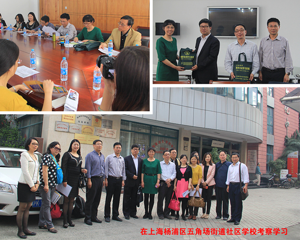 我们在杨浦区五角场街道社区学校考察交流学习时,杨浦区推进学习型社会建设指导委员会办公室副主任王建平、五角场街道办事处副主任王晓光等领导热情接待我们。考察学习中让我们感受到上海杨浦区五角场街道社区学校积极开展“五区融合、联动发展”,充分发挥“五区”资源优势,积极探索“共建共育、共创共享”的创建机制,盘活好公共社区、大学校区、科技园区、环岛商区、部队营区等“五区”文化教育资源,凸显街道社区学校“五区联动”的学习型社区创建特色,不断扩大全民学习的覆盖面。同时在社区,开设五角场街道“院士社区讲坛”项目,开展上海科普大讲坛、“走近院士”活动等,向社会组织借智力活力,在社区教育中,发挥社会组织、民间团体的主体作用,扩大社区教育的参与度和覆盖面,推动了社区教育的发展。