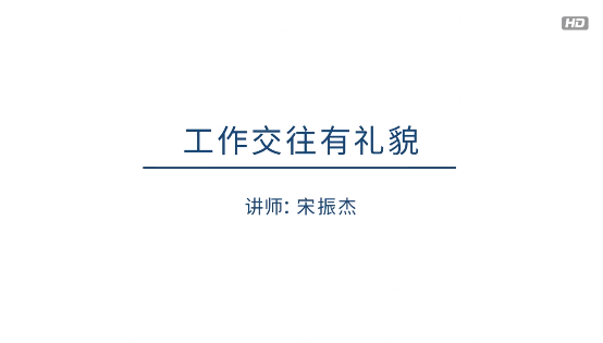 内容简介: 对于从校园走向职场的新人来说,职业范儿是必须的装备。那么如何才能成为一个遵守职业规范、拥有职业范儿的职业人呢?本课程结合实际事例,讲解了如何礼貌地接打电话,阐述了如何见面打招呼,并探讨了如何递名片;最后分享了发邮件的称呼、开头、结尾、附件发送等规则以及注意事项...